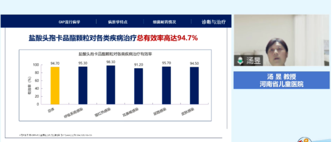 湯昱教授在專題《兒童社區(qū)獲得性肺炎的病原學(xué)研究與治療》中提到,兒童呼吸道感染是全球面臨的巨大挑戰(zhàn),兒童CAP是全球5歲以下兒童感染性疾病發(fā)病和死亡的主要原因,常見致病菌肺炎鏈球菌、金黃色葡萄球菌、流感嗜血桿菌等的耐藥情況不容樂觀。北京大學(xué)第一醫(yī)院臨床藥理研究所體外抗菌作用研究顯示,鹽酸頭孢卡品酯顆粒對(duì)呼吸道常見致病菌的抗菌活性表現(xiàn)良好,上市后臨床研究也表明它對(duì)各類感染性疾病的總有效率在94.7%以上,對(duì)于呼吸系統(tǒng)治療有效率更高。