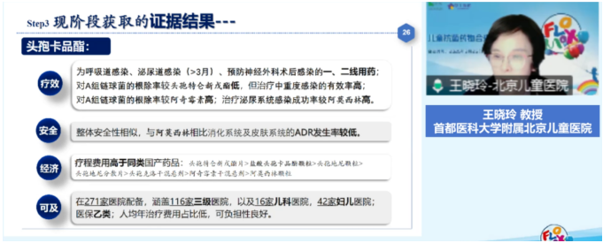 王教授還提到,頭孢卡品酯血清蛋白結(jié)合率低于其他三代頭孢類藥物,可快速起效,體內(nèi)組織分布良好,為呼吸道感染、泌尿道感染的一、二線用藥。鹽酸頭孢卡品酯顆粒是原研進(jìn)口、兒童專用的第三代頭孢菌素類抗菌藥物,國(guó)談產(chǎn)品,可及性和可負(fù)擔(dān)性良好。